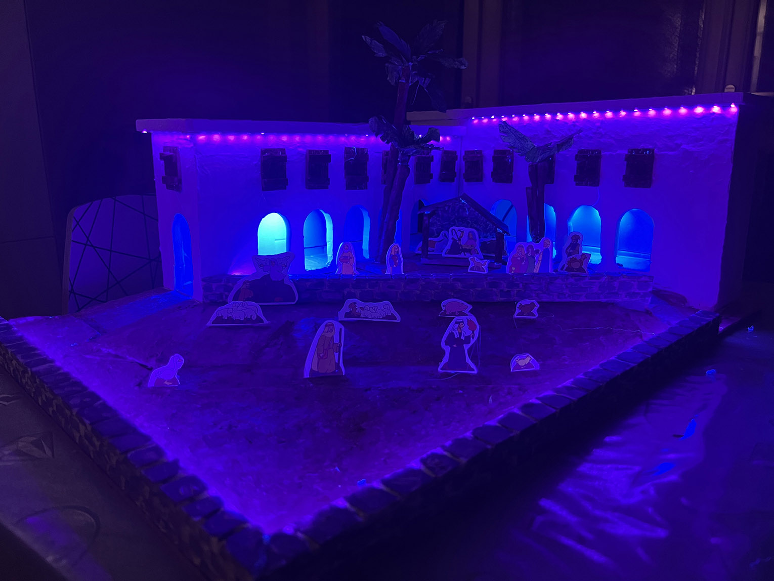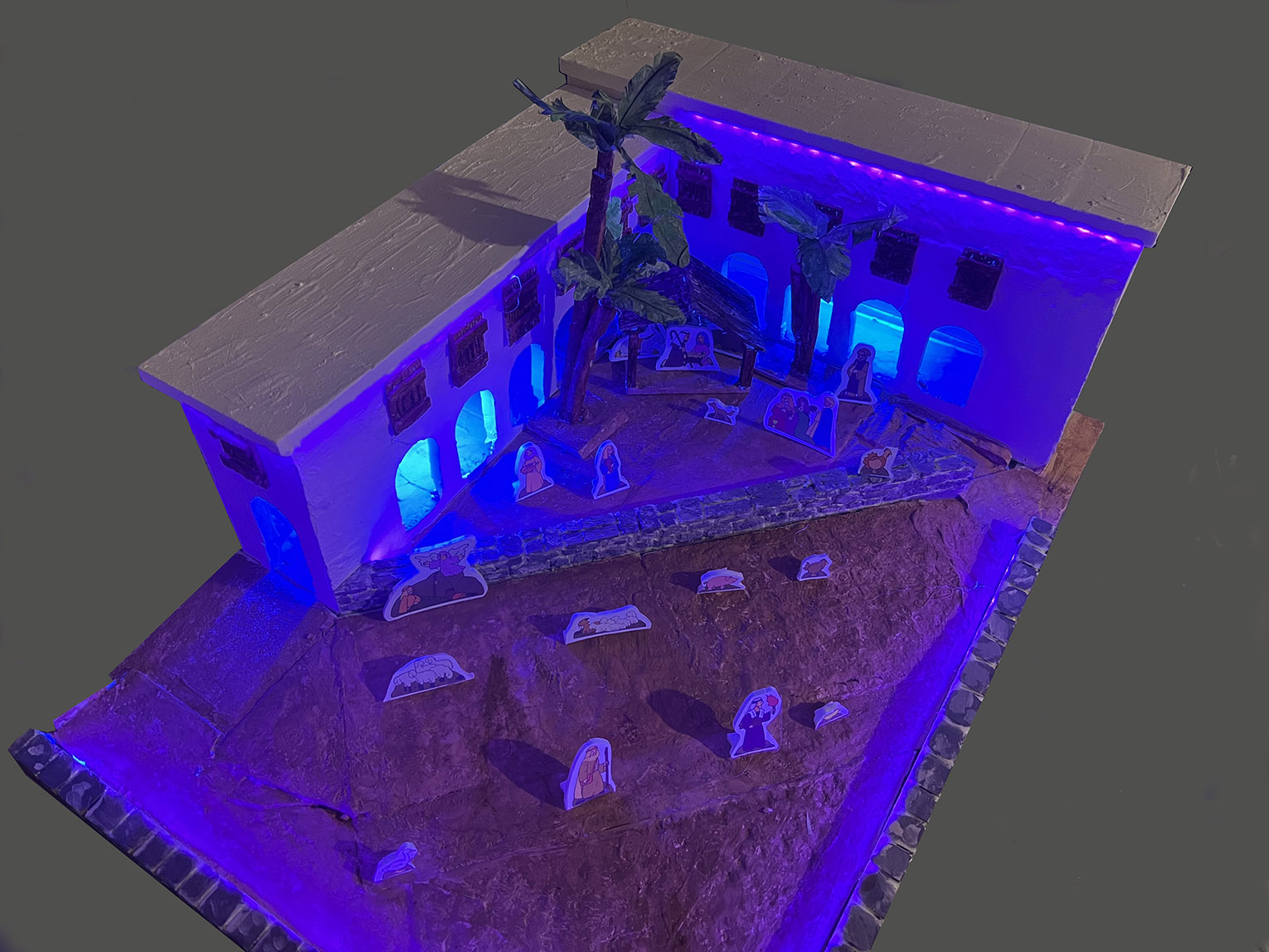 "Il presepe - continua l'autore - ha un po' di terreno libero edificabile, quindi se si riesce a far modificare il piano regolatore (del presepe intendo!), al "fortunato vincitore" posso fornire qualche piccola abitazione/bottega da aggiungere il prossimo anno (naturalmente gratis). Illuminazione unica fase notturna, se si vuol fare la fase diurna basta non attaccare la spina dell'alimentatore dei led. Presenta un numero di led maggiore di 100 (ma consuma neanche 5 watt) di colore lilla".