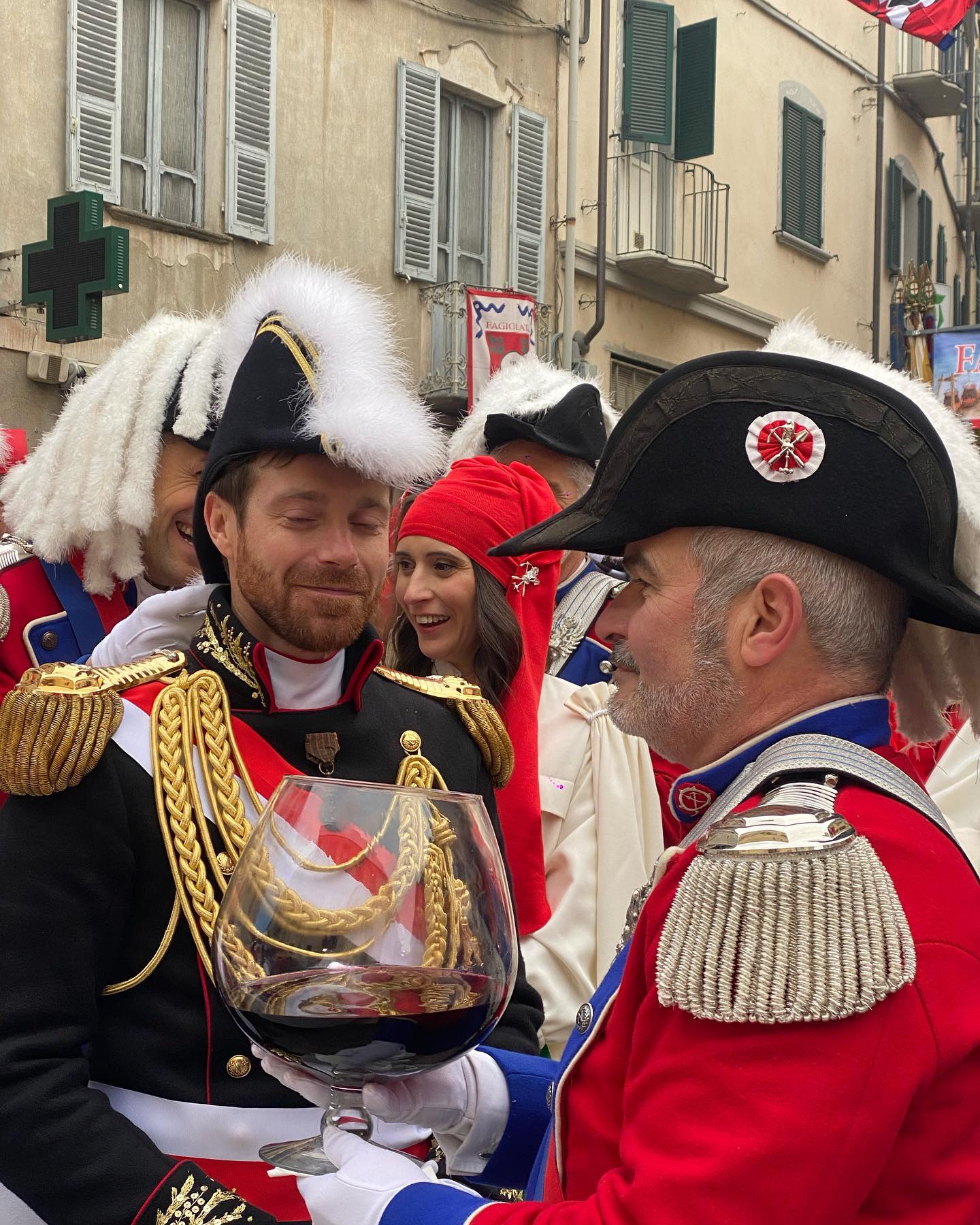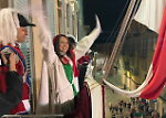 La Mugnaia con il Generale, lo Stato Maggiore e la Scorta d’Onore assistono alla Cerimonia dalla sponda destra del fiume.