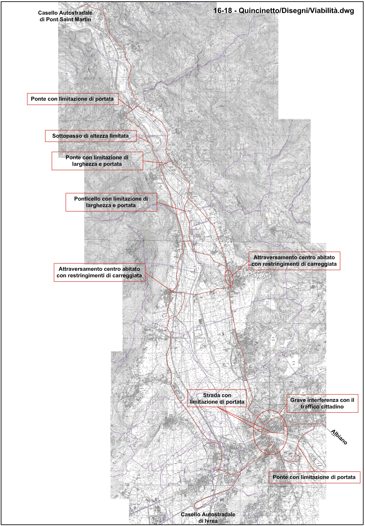 Tra le tante una: l’adequamento del ponte di Montestrutto per spostare il traffico su Quassolo e in direzione del casello di Ivrea. Dirigersi direttamente al casello, peraltro è da considerarsi una priorità considerando che anche in centro a Ivrea esiste un limite di 26 tonnellate, oltre il quale c’è il rischio che frani tutto il lungodora.