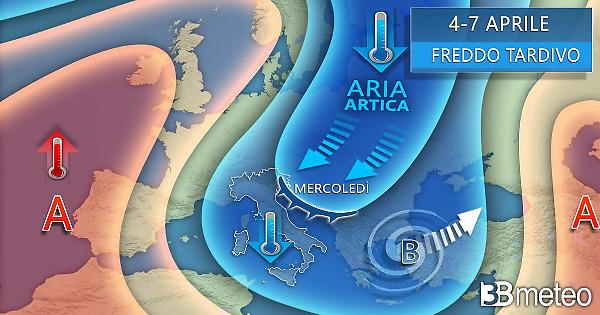 SETTIMANA DI PASQUA DAL SAPORE INVERNALE– “L'inizio della settimana è caratterizzato dal passaggio di una intensa perturbazione maggiormente attiva al Centro Sud con piogge e temporali. Essa è associata ad un profondo minimo di bassa pressione che nel suo movimento dallo Ionio verso la Grecia richiamerà aria decisamente fredda per il periodo in arrivo dalla Scandinavia” – spiega il meteorologo di 3bmeteo.com Francesco Nucera che prosegue - “Questa massa d'aria fredda condizionerà il tempo di buona parte della Settimana Santa con temperature al di sotto della media del periodo e anche la possibilità di neve fino a quote basse sui versanti adriatici e al meridione, zone dove saranno più probabili le precipitazioni a carattere irregolare (anche a carattere di rovescio o temporale con locali grandinate). L'apice dell'irruzione fredda sarà raggiunta tra mercoledì e giovedì. Le precipitazioni invece continueranno ad essere scarse o in larga parte assenti al Nord, sfavorite dalle correnti secche, con prosieguo e anzi ulteriore aggravio delle condizioni siccitose”.