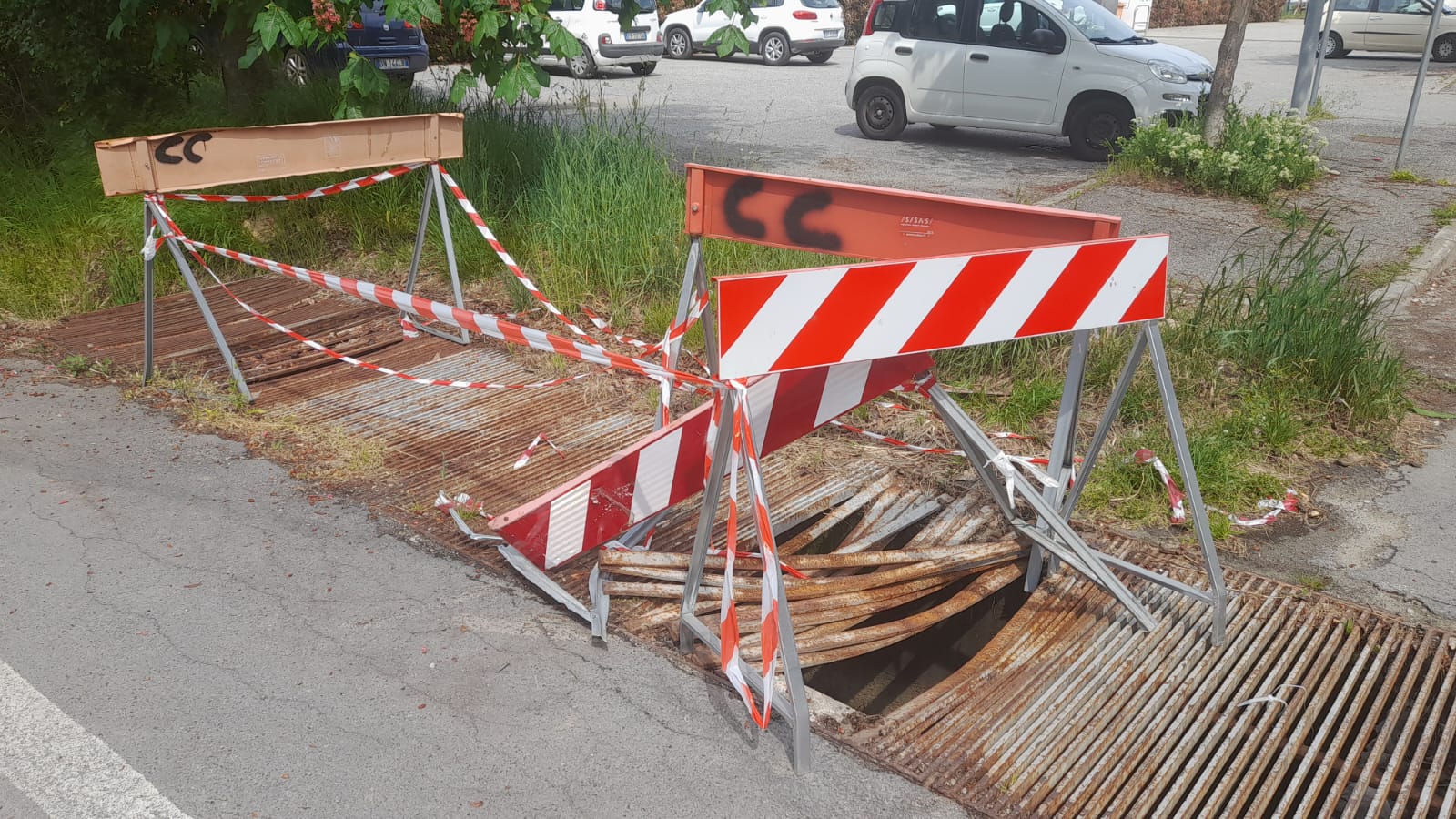 Qualche settimana fa, il consigliere comunale denunciava sui social, sui giornali e con una segnalazione a Palazzo Santa Chiara la pericolosità di una caditoia in ghisa praticamente sfondata dal passaggio dei mezzi pesanti che "tagliano" la curva.