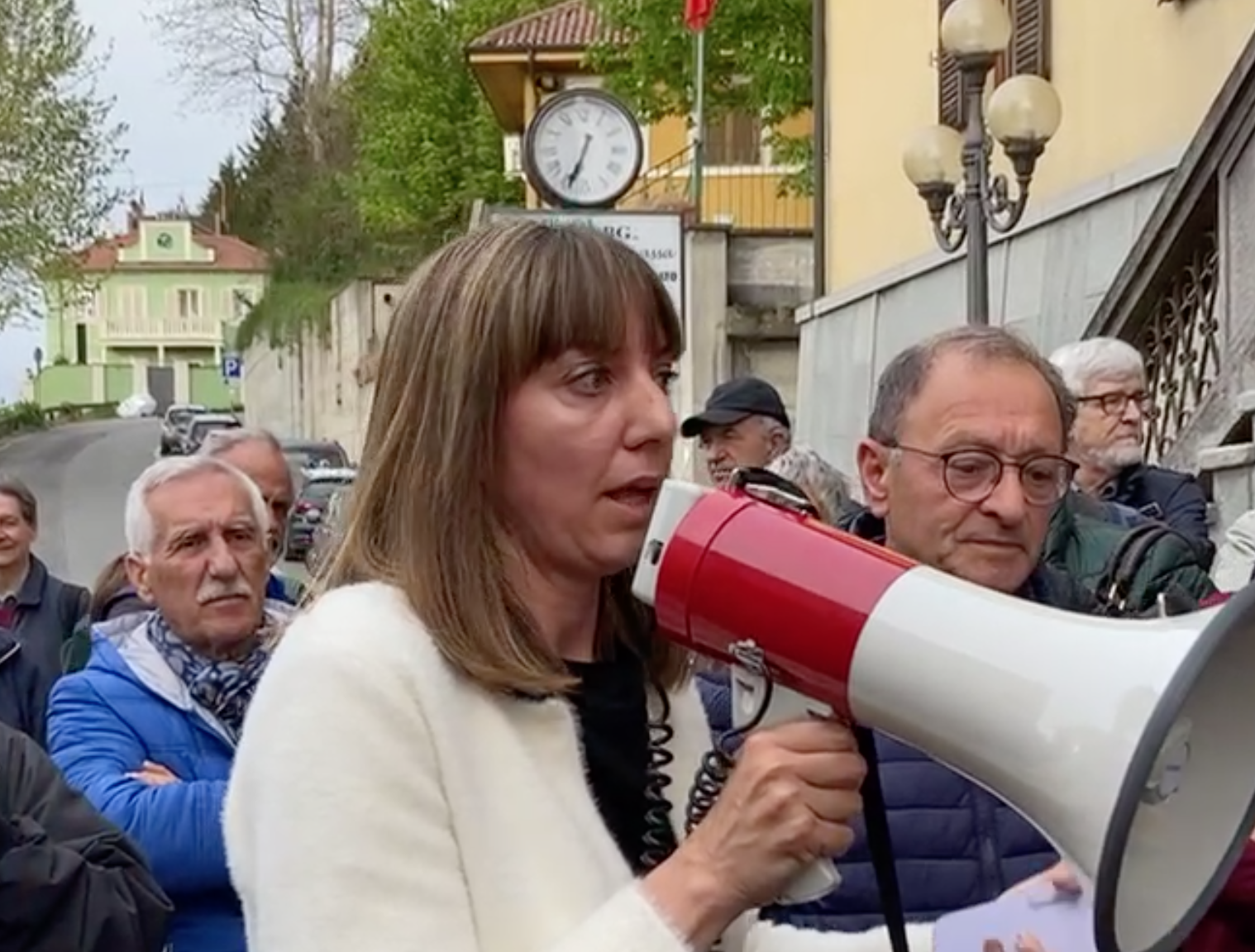 La Sindaca Giulia Guazzora di fronte ai manifestanti