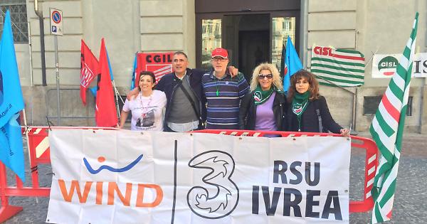 Oggi in piazza di città un presidio decisamente numeroso di lavoratori e lavoratrici WIND3 della sede di Ivrea in contemporanea allo sciopero nazionale indetto per l’intera giornata lavorativa.