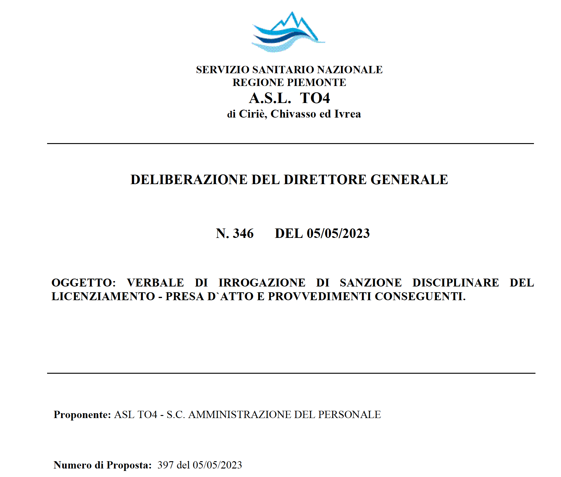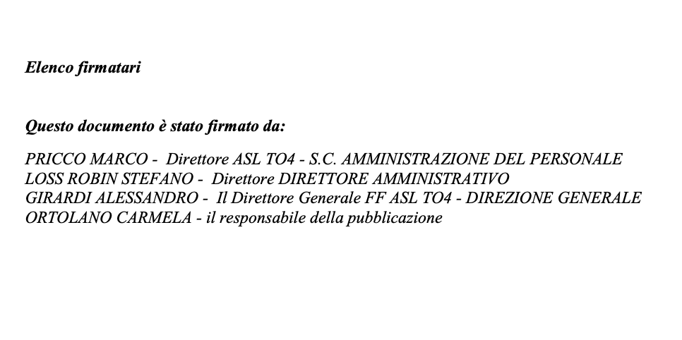 Con una delibera del 5 maggio scorso l’Asl To4 ha “licenziato” la dirigente Carla Fasson. Stando a quel che si legge la decisione saerbbe stata presa per “mancanza” dei titoli necessari ad occupare la posizione che stava occupando. Il provvedimento non è firmato dal direttore generale Stefano Scarpetta, ma dal direttore del personale Marco Pricco, congiuntamente al direttore amministrativo Stefano Loss Robin e dal direttore Alessandro Girardi.