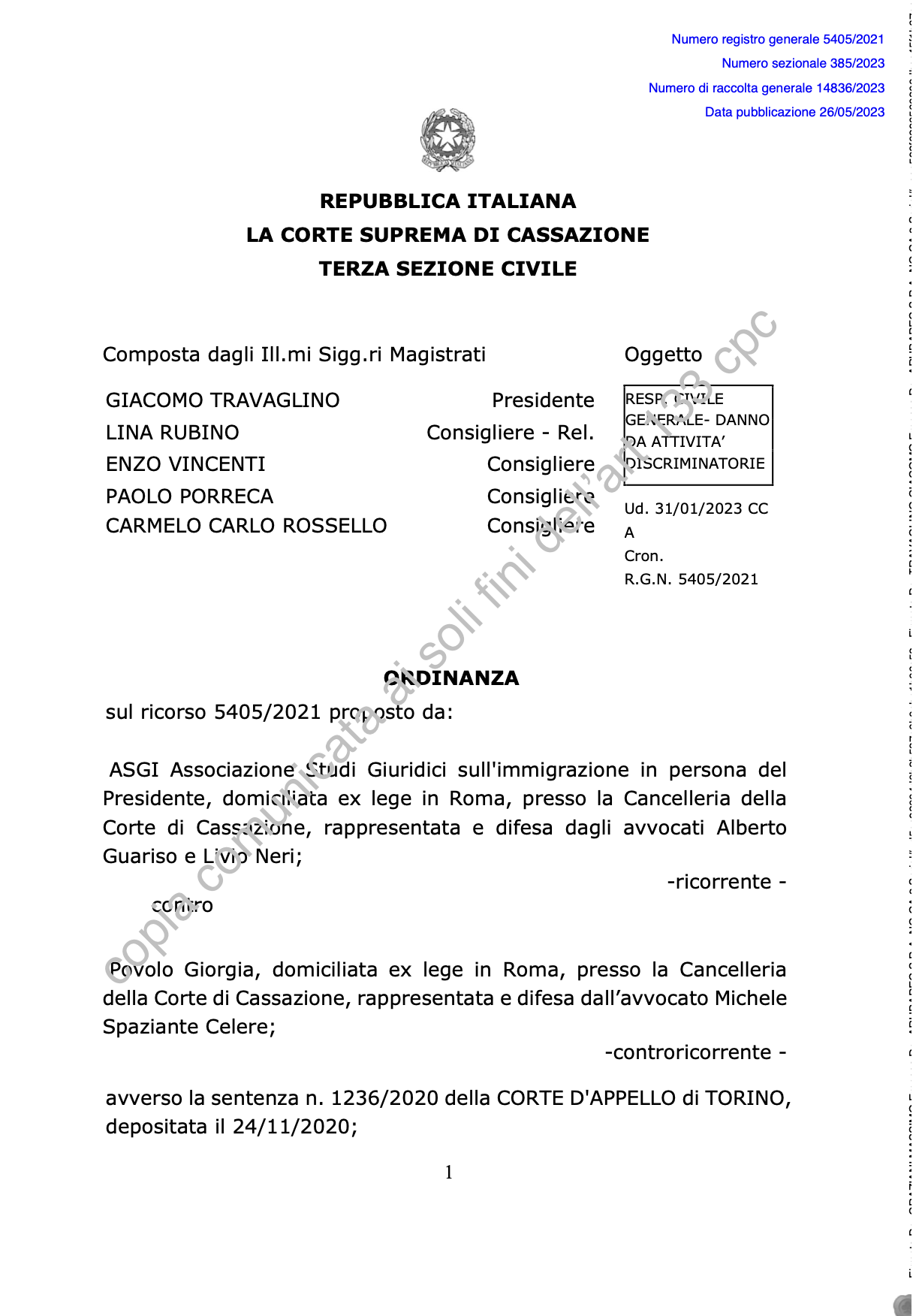 L’iter giudiziario non si è ancora concluso ma una sentenza della Corte di Cassazione del 31 gennaio 2023 ha completamente ribaltato le decisioni di “assoluzione” pronunciate in primo e in secondo grado che avevano definito i due commenti come la semplice “estrinsecazione della libertà di espressione, condivisibile o meno, ma pur sempre manifestazione del diritto tutelato dall’articolo 21 della Costituzione e corrispondente alla linea politica di taluni gruppi politici e partiti...”.