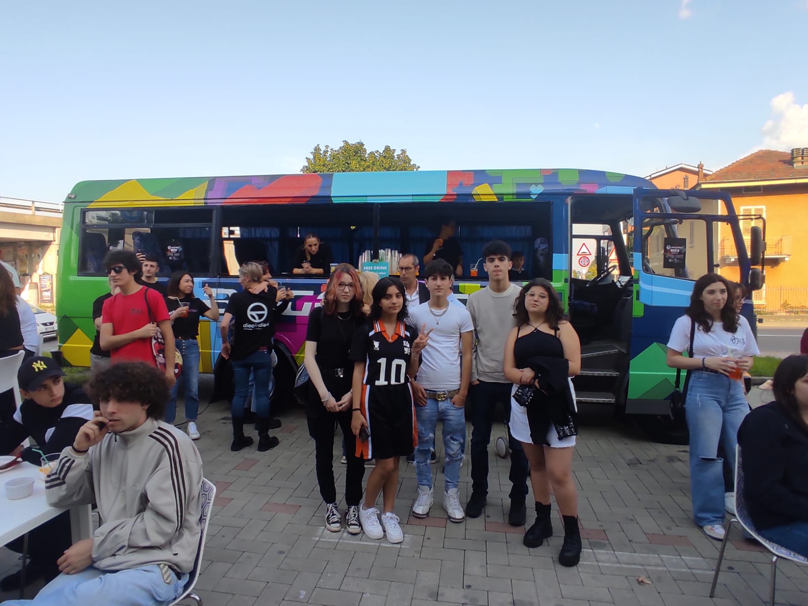 Il pullman della Boggetto con le nuove coloratissime grafiche è stato presentato nel corso del "Dieciedieci" Music Festival che si è tenuto mercoledì 31 maggio in via Robassomero.