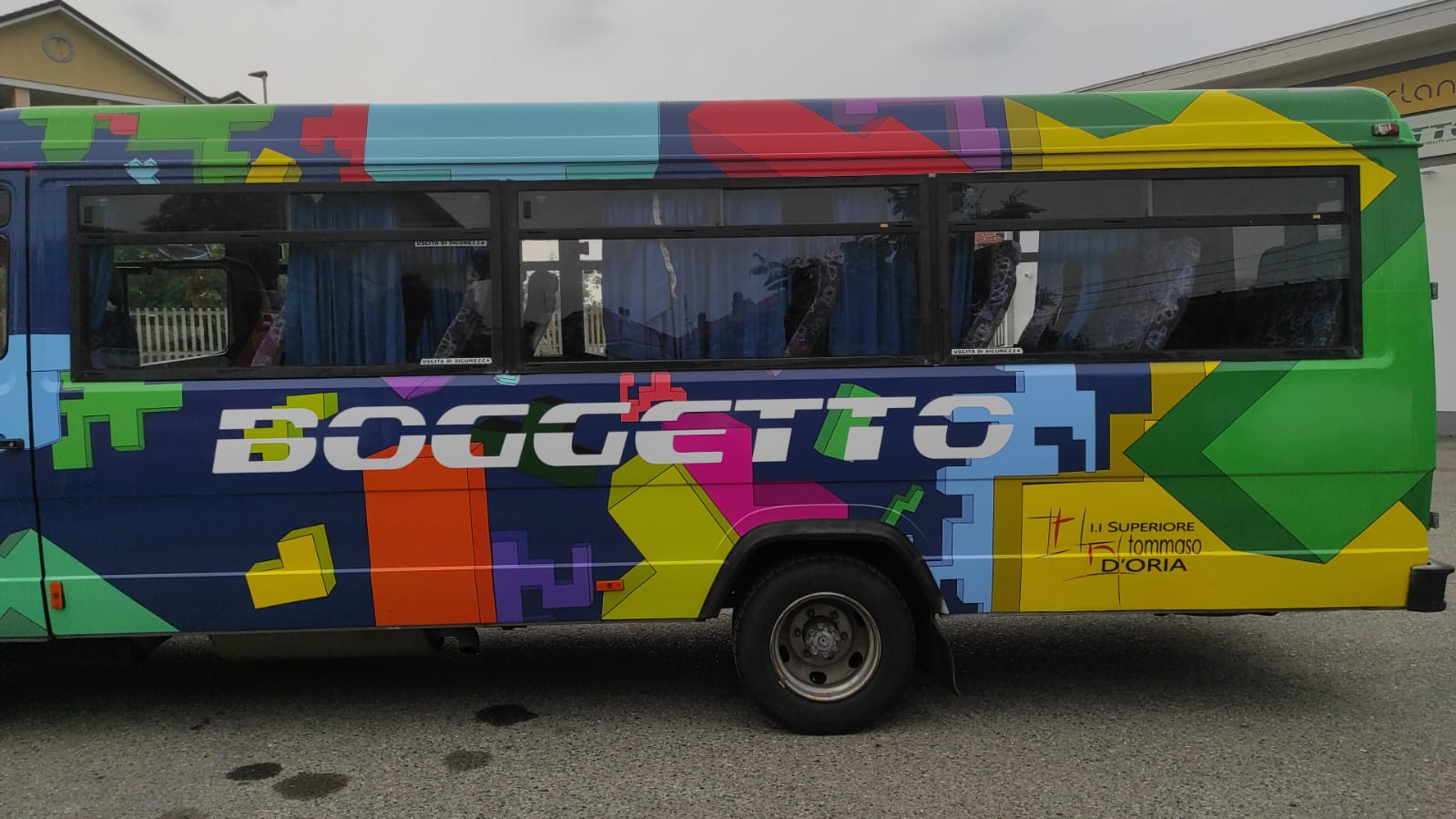 Basta con il giallo. A dare un tocco di colore al nuovo scuolabus ci hanno pensato i ragazzi dell'Istituto Tommaso Doria di Ciriè. Sono di uno di loro, infatti, le grafiche scelte dalla ditta di trasporto Boggetto per il nuovo mezzo utilizzato per portare proprio gli studenti.