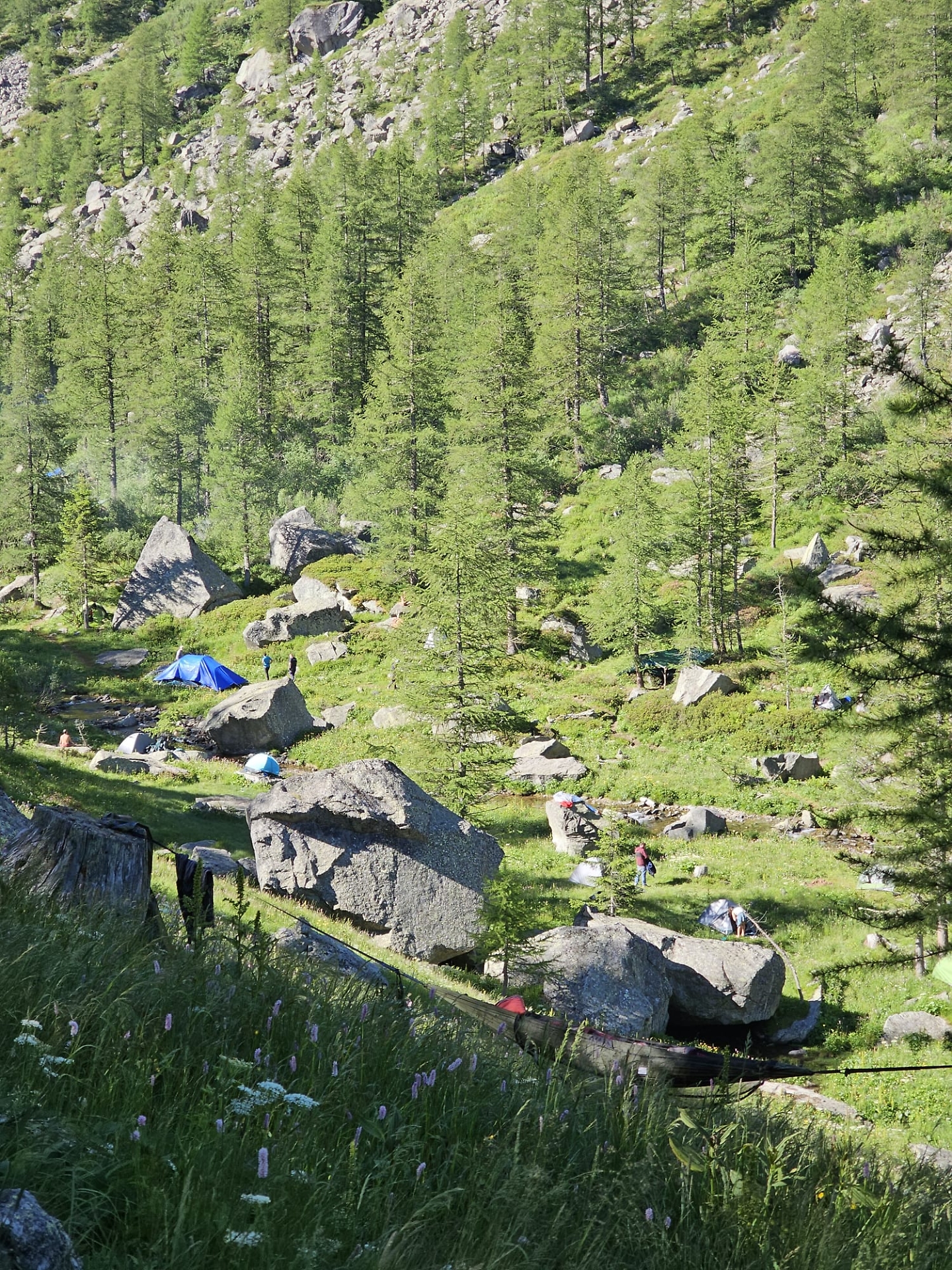 Sia gli uni che gli altri ne percepiscono poco la presenza visto che si sono accampati ad un’ora di cammino e non li noterebbero comunque più di tanto trattandosi di un periodo con buoni flussi di persone. Quello di cui si accorgono sono le loro vecchie auto (in genere degli Anni Ottanta) parcheggiate in paese da giorni e giorni e che occupano molti spazi. Riceviamo invece segnalazioni dagli escursionisti (in quella zona passa il sentiero della Grande Traversata delle Alpi) che ci chiedono: “Ma come? E’ vietato campeggiare piantando una sola tenda e poi ci ritroviamo di fronte ad un simile spettacolo?”.