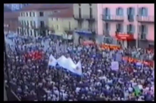 La folla di piazza della Repubblica che ascoltava le parole di Monsignor Luigi Bettazzi