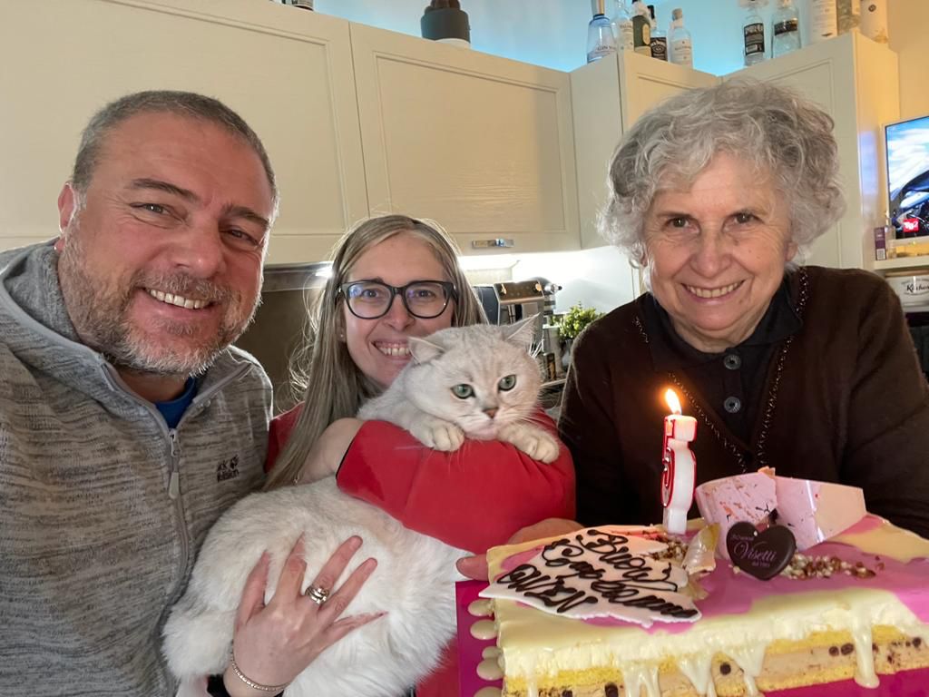 MONICA CON IL MARITO CARMELO, LA MAMMA MAURINA E IL GATTO OWEN