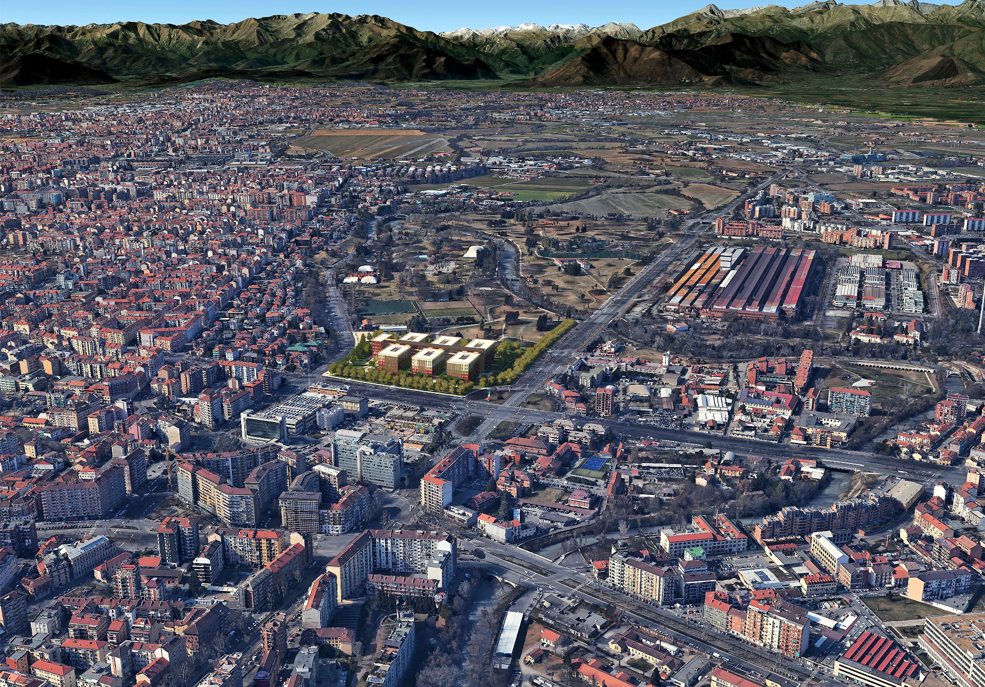 L’ipotesi di progetto è stata elaborata in collaborazione con il team del Politecnico di Torino coordinato dal professor Giorgio Garzino. Il nuovo ospedale, che verrà realizzato nell’attuale area sterrata nei pressi del vicino Parco della Pellerina, avrà un impianto di tipo orizzontale con tre corpi trasversali separati da ampi spazi verdi con vetrate e gallerie di collegamento.