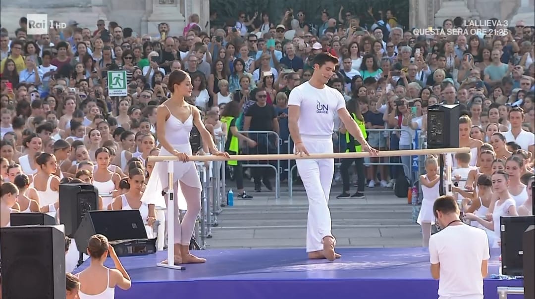 L’evento è stato trasmesso in diretta su Rai 1 in mattinata, con un colpo d’occhio spettacolare sulla piazza Duomo gremita di ballerini vestiti di bianco.