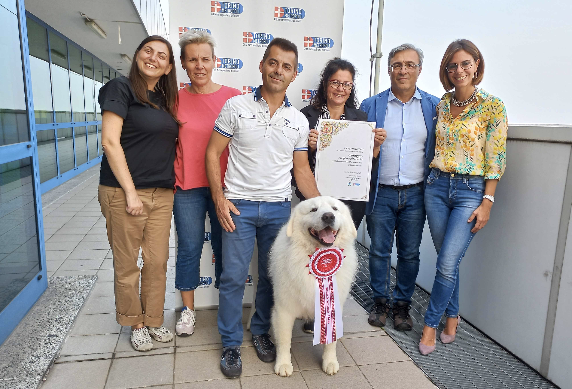 Vive a Castellamonte, ha compiuto 6 anni nel mese di settembre e si è laureato campione iridato per razza e bellezza al World Dog Show, la massima competizione cinofila mondiale, che si è svolta a Ginevra nello scorso mese di agosto. Nel pomeriggio del 5 ottobre Cafaggio ha fatto visita alla sede di corso Inghilterra della Città metropolitana di Torino, per ricevere, sul terrazzo del 15° piano, le coccole e i complimenti dell’amministrazione.