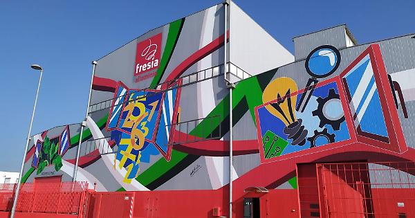 Nell'elenco troviamo anche Fresia Alluminio di Volpiano, distintasi negli ultimi anni per una particolare vivacità nel campo dell'arte e della bellezza. Ed è degli Amministratori delegati Cristina e Valentino Fresia l'idea di far dipingere la facciata dal pittore Ugo Nespolo.
