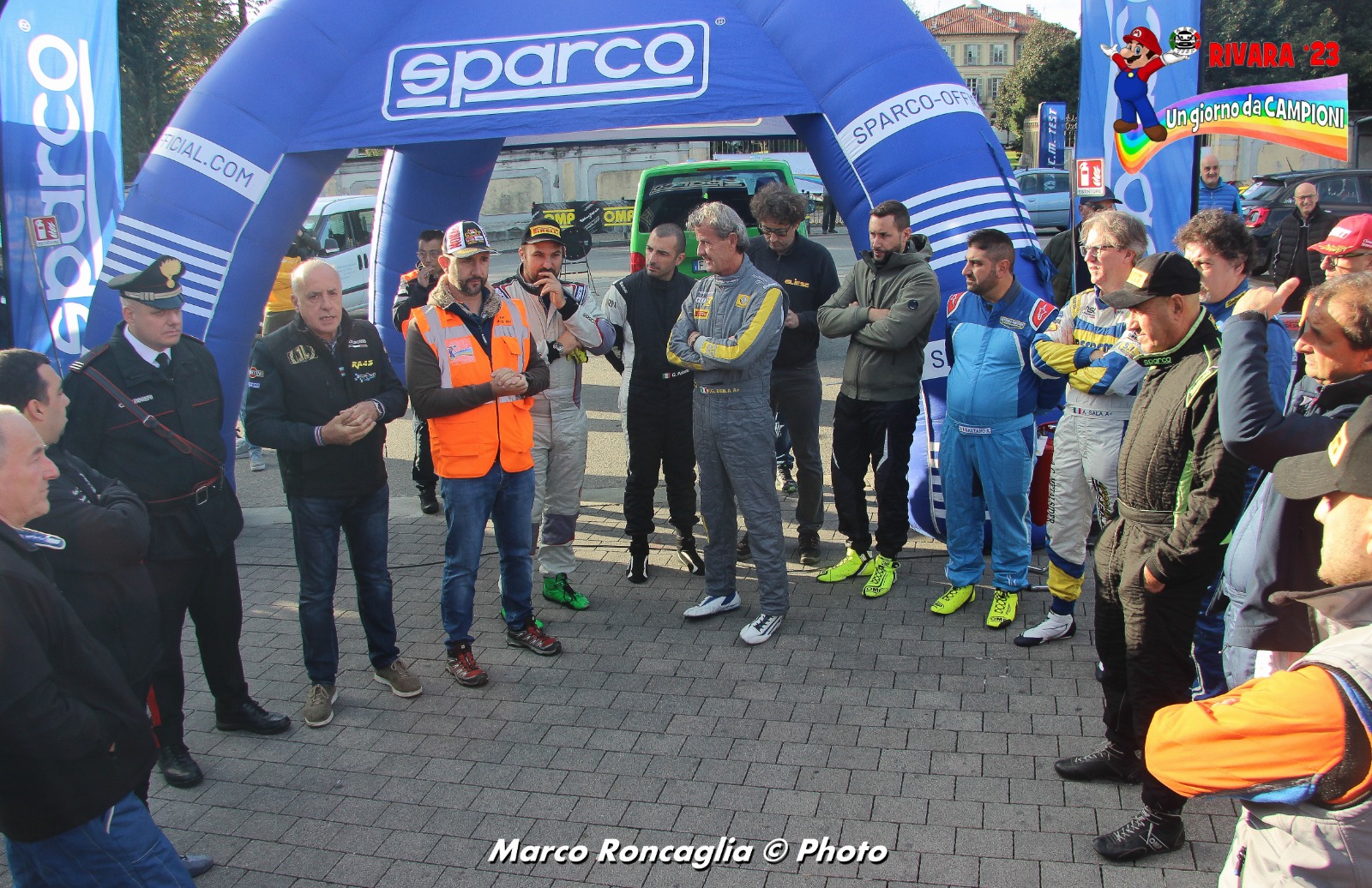 Non ci ha pensato su due volte. Il sindaco di Rivara, Roberto Andriollo, ha indossato il casco ed è salito anche lui su una delle auto da rally che hanno animato l'evento "Un giorno da Campione"."