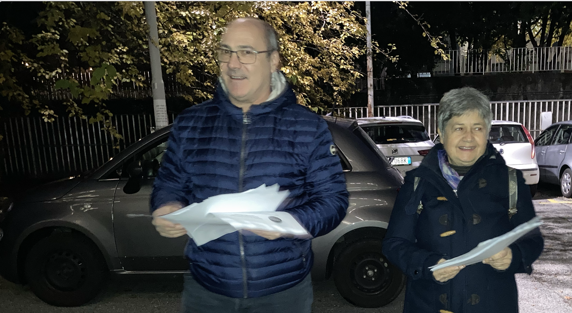 Martedì scorso fuori dalle Officine H, alle 17,30, poco prima dell'inizio di una conferenza organizzata dall'Amministrazione comunale con RFI per raccontare dove si è giunti con il progetto di "elettrificazione" delle linea Ivrea - Aosta, c'erano Franco Giorgio e Cadigia Perini a volantinare.