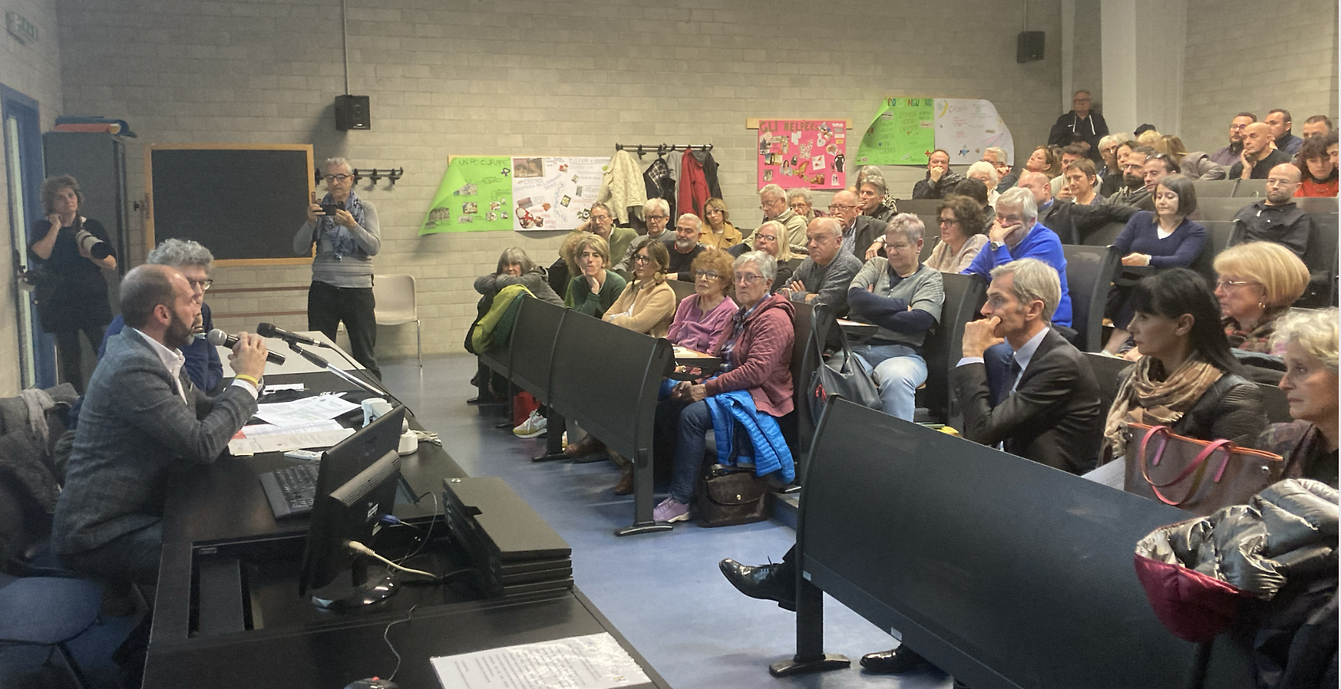 Al tavolo degli oratori l'ingegner Luca Bassani di RFI con il sindaco Matteo Chiantore e l'assessore Francesco Comotto.