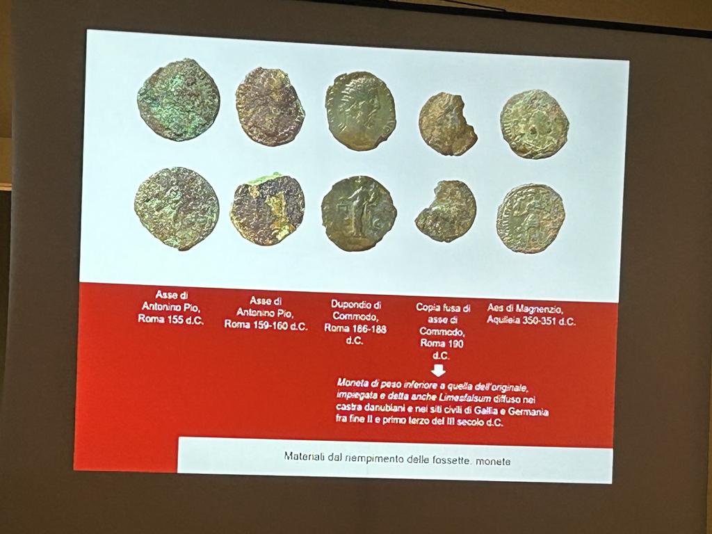 "Il "limes falsum" - ha spiegato la dottoressa Ratto - è una moneta molto particolare, non coniata, ma fusa, fatta utilizzando un altra moneta coniata e ha un peso decisamente inferiore all'originale. Erano monete utilizzate in situazioni di emergenza, in cui si aveva bisogno di creare della moneta da far circolare. Il nome "limes falsum" significa "falso del confine" e si riferisce al fatto che venivano fatte negli accampamenti dove c'era bisogno di pagare le truppe e non si poteva coniarle con i metodi tradizionali. Sono state poi utilizzate nelle province, in Gallia e in Germania".