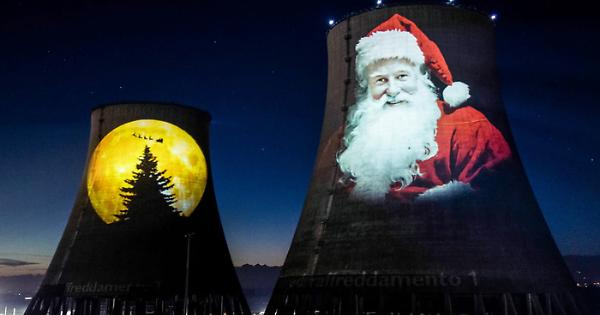 Le vecchie torri di raffreddamento della ex centrale termoelettrica di Trino, nel Vercellese, nelle vicinanze del borgo di Leri Cavour, diventano opere di illuminazione artistica. Quest'anno le loro pareti esterne ospitano gigantesche immagini ispirate alle feste natalizie, accese fino all'8 gennaio.