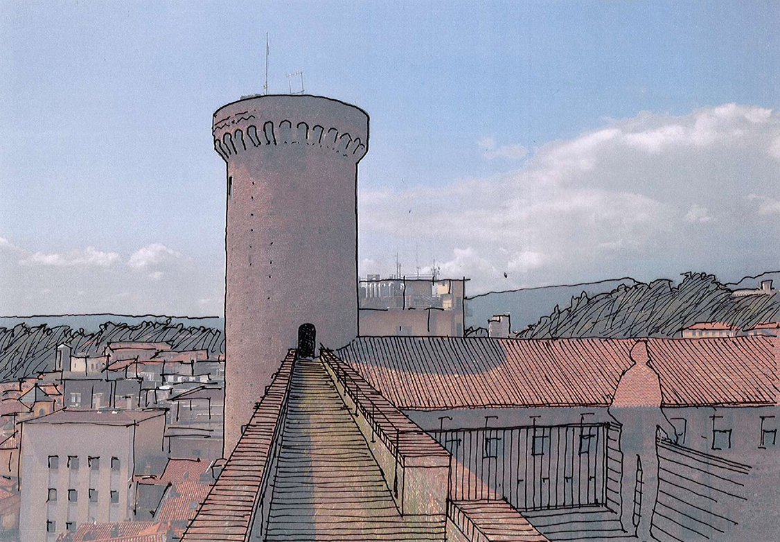 Si è realizzata, inoltre, una nuova scala la cui struttura rimanda a quella delle torri mobili che venivano accostate alle fortificazioni durante gli assedi, che permette l’accesso ai camminamenti di ronda per un inedito punto di vista sulla Città e sul paesaggio circostante.