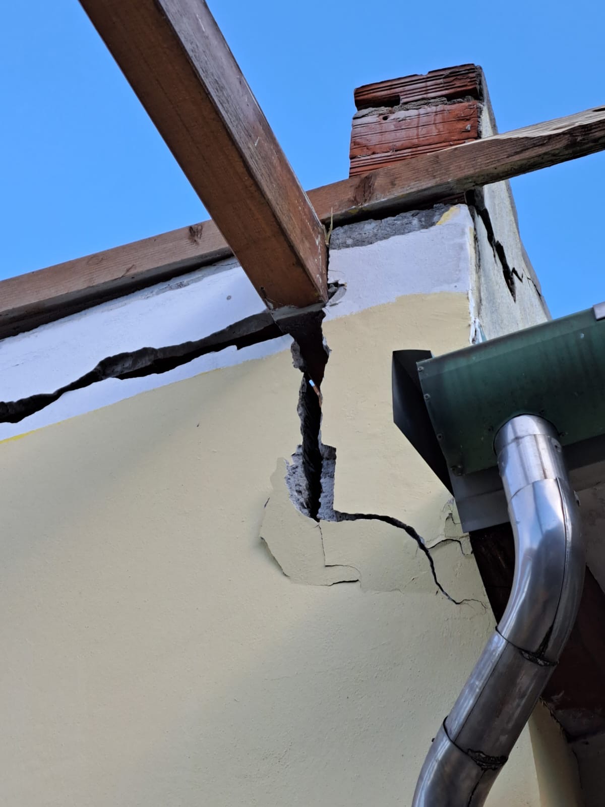 Ciò che resta del tetto della scuola dell'infanzia Arcobaleno