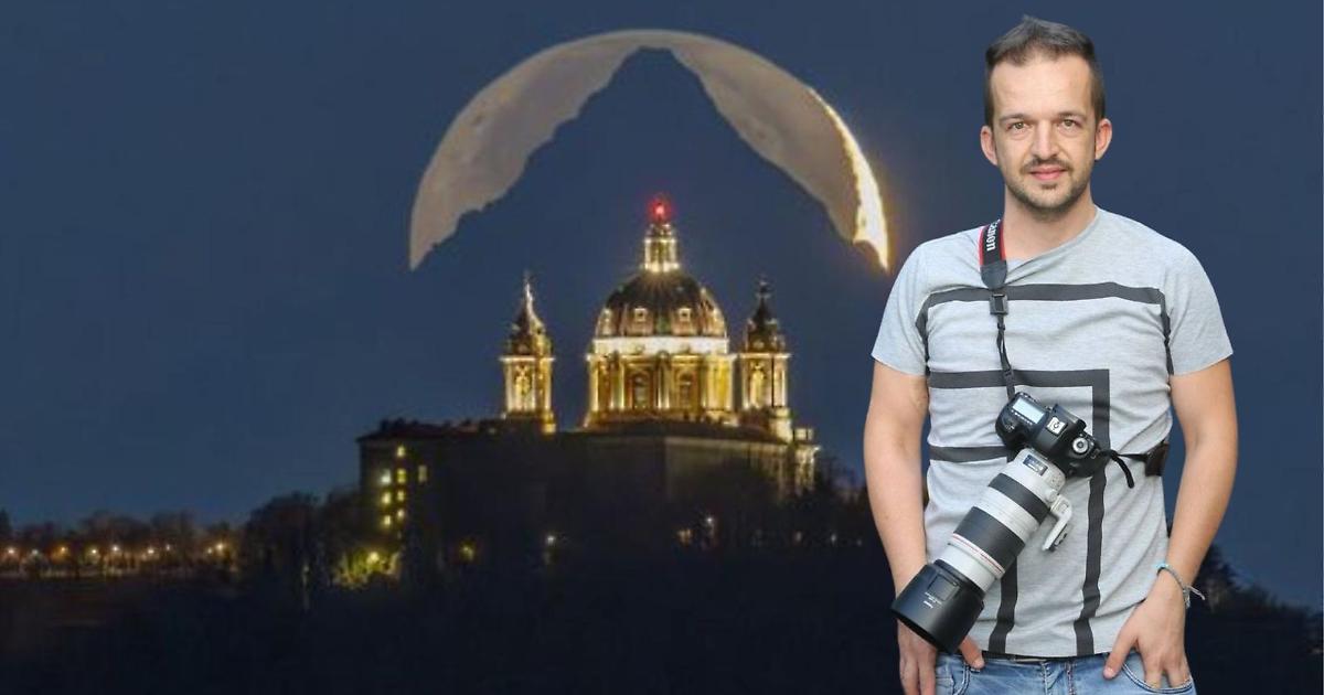 "L’ispirazione mi è venuta nel 2017 quando ho iniziato a gironzolare per le colline sopra a Chivasso di Castagneto Po e San Raffaele Cimena. Da lì, un terreno ormai familiare eppur pieno di misteri, ho compreso che vi sarebbe stata la possibilità di scattare una foto che includesse, allineati, la Basilica di Superga, il Monviso e la luna, una triade celestiale in perfetto allineamento. E’ stato un lavoro di ricerca, attraverso vari sopralluoghi, del punto esatto in cui i tre soggetti si allineavano uno sull’altro. Grazie alla mia esperienza, mi sono reso conto che alcune fasi lunari avrebbero regalato l’angolazione ideale per catturare quello che sentivo essere il tramonto perfetto. Da lì ho iniziato ad affinare i miei tentativi fino alla sua realizzazione. Il momento dello scatto l’ho determinato in base alle tabelle dove vi sono gli angoli azimutali della luna collegati ai calendari".