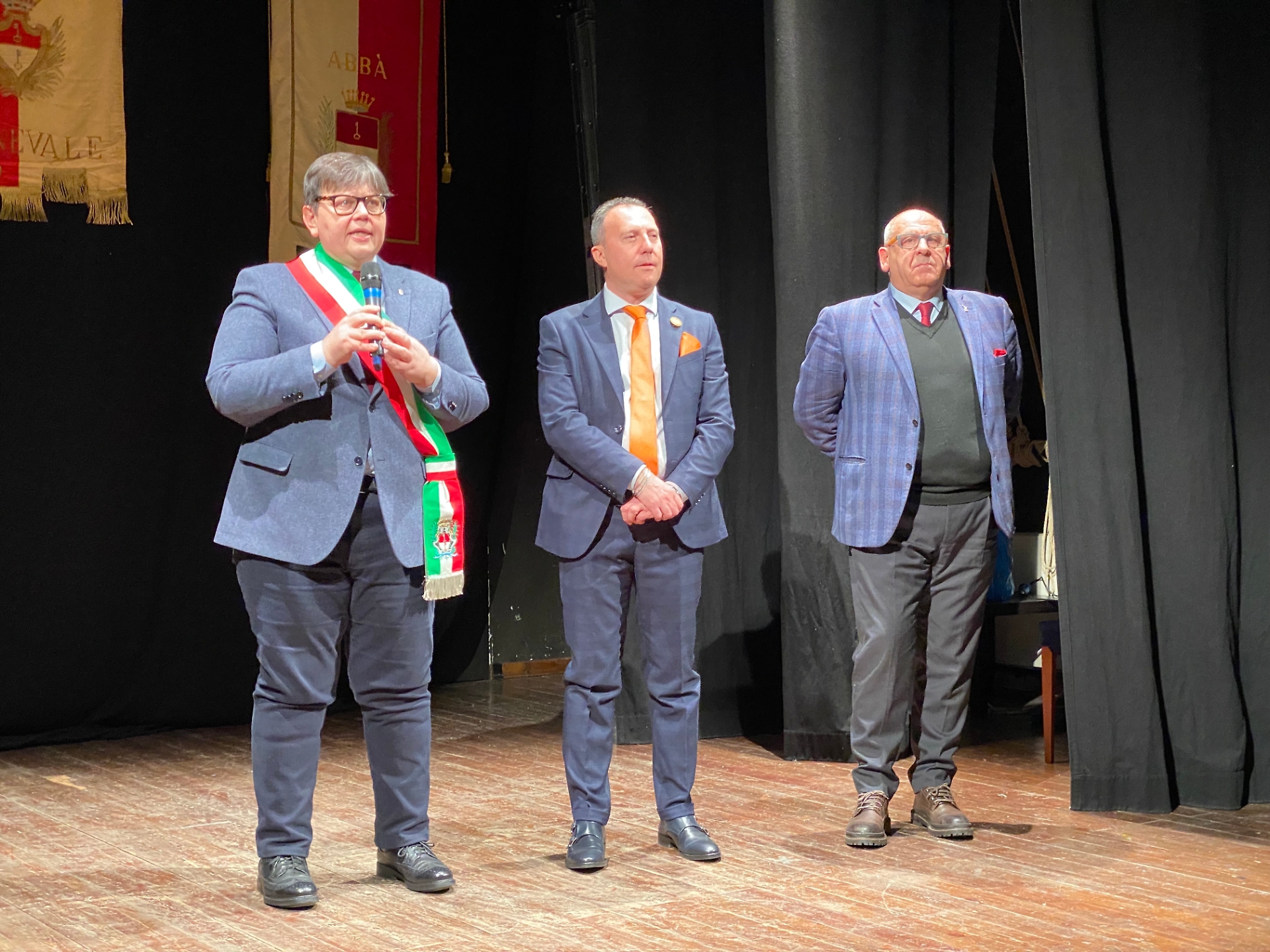Da sinistra, sul palco del teatrino civico, Pasquale Centin, Davide Chiolerio e Gianluca Gavazza
