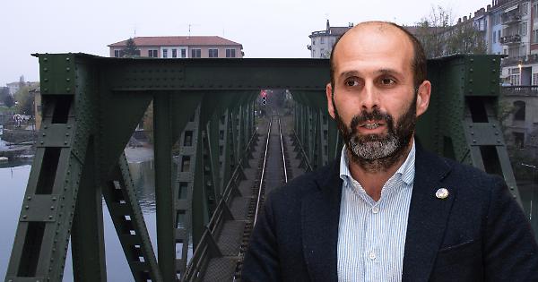 Il sindaco Matteo chiantore. Sullo sfondo il ponte ferroviario