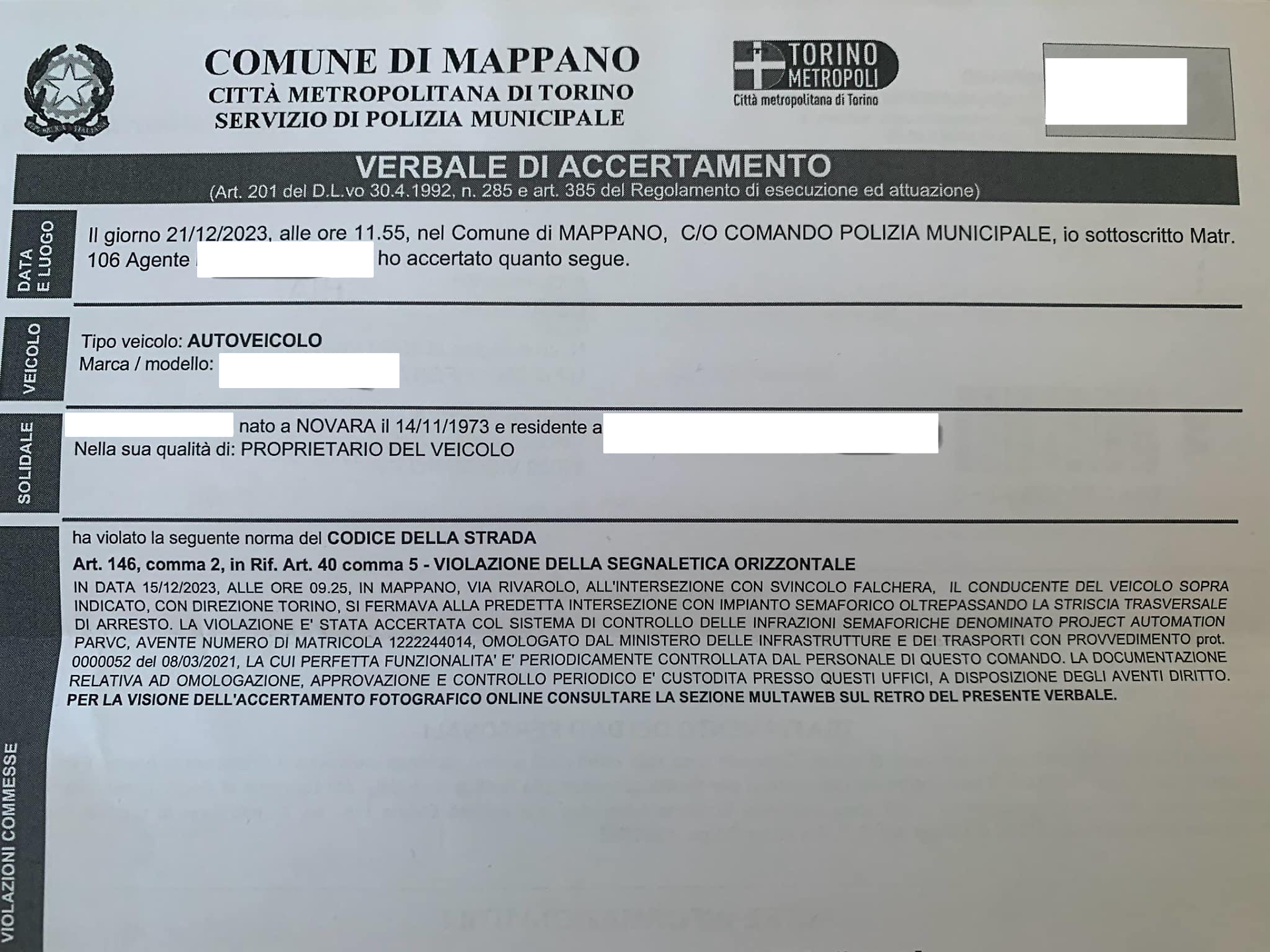 Il caso è stato segnalato da uno dei cittadino multati, la sanzione è del 21 dicembre 2023. L'automobilista si è fermato sotto il semaforo al di là della linea di arresto ed ha attraversato quando la luce del semaforo è diventato verde. Non si tratta, dunque, di un passaggio con il rosso ma di una violazione della segnaletica orizzontale.