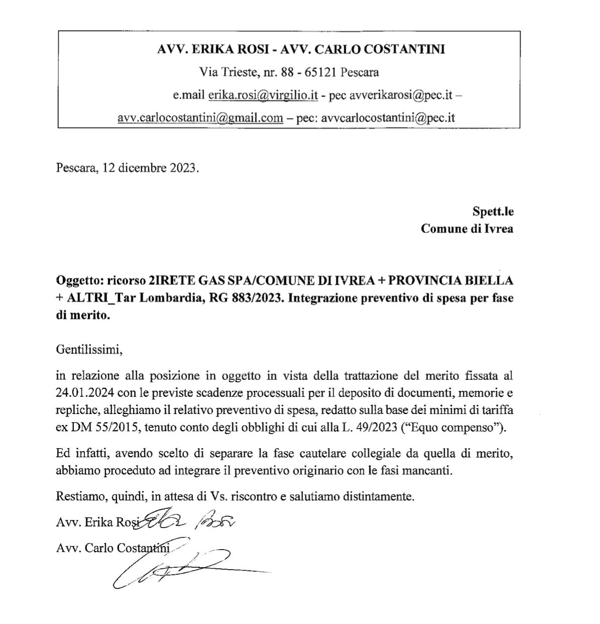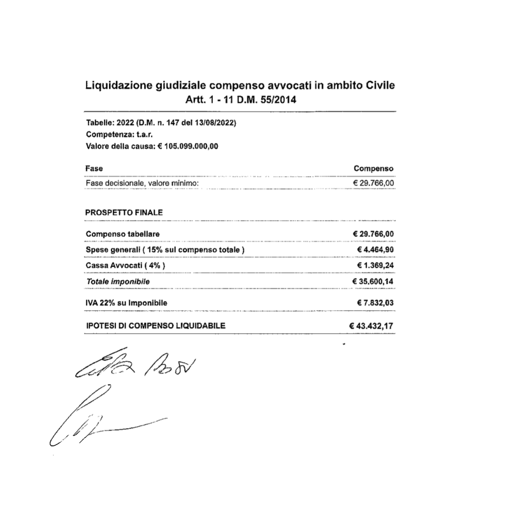 Le spese legali calcolate degli avvocati Erika Rosi e Carlo Costantini alla fine ammonteranno a più di 77 mila euro. Non sarà una mazzata ma non son certo indolori...