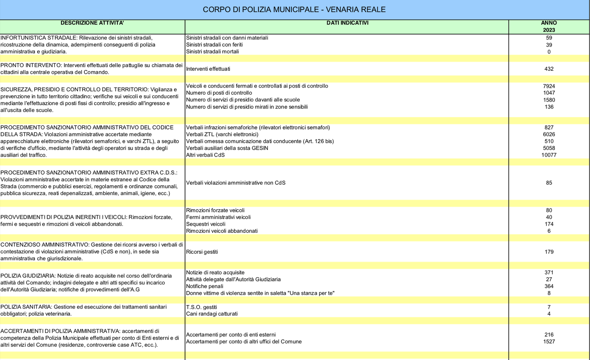 Sono solo 827, invece, le multe per infrazioni semaforiche: gli automobilisti che passano con il rosso. C'è, infine, anche una sezione relativa ad "Altri verbali del codice della strada" che segna più di 10 mila verbali.