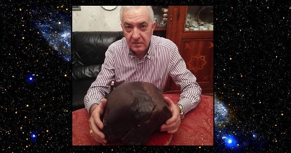 Claudio Casacci con il suo meteorite da 25 chili