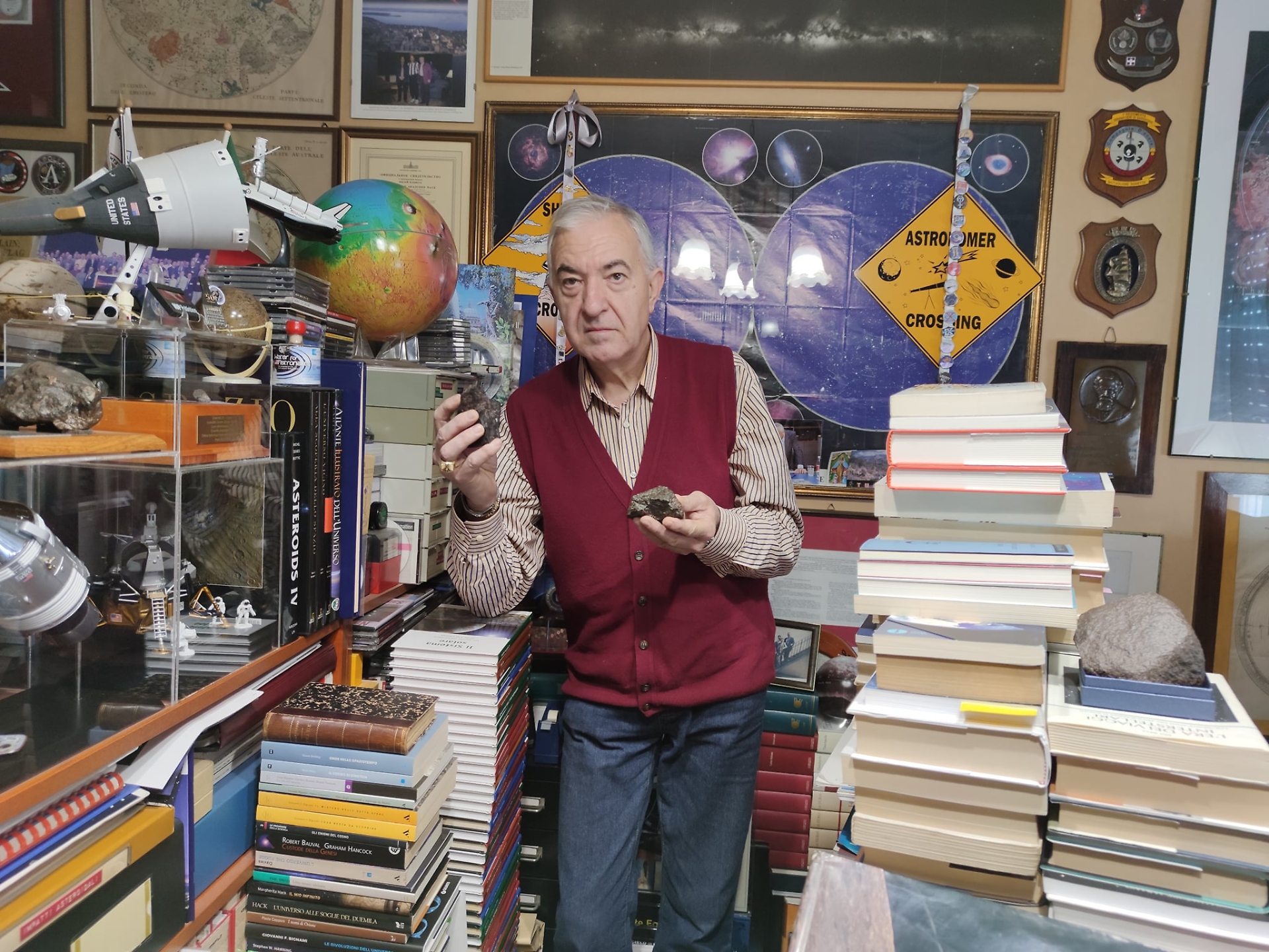 Alcuni li ho cercati, altri li ho comprati tramite apposite aste. Le campagne dove andarle a cercare sono in posti che ora sono zone di guerra, penso alla Libia, Israele. Si perde un sacco di questo materiale spaziale da poter studiare perché cadono in zone pericolose. È impensabile mettere in piedi una campagna per andare in Libia, in Israele, posti un po’ a rischio. Sono oggetti molto costosi”.