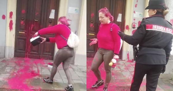 Ha preso litri e litri di vernice rosa e l'ha scaraventata contro l'ufficio dei servizi sociali del Comune di Settimo Torinese. Natalina Colangelo gridava: "Siete dei vigliacchi! Siete dei delinquenti legalizzati! Vergognatevi, dov'è