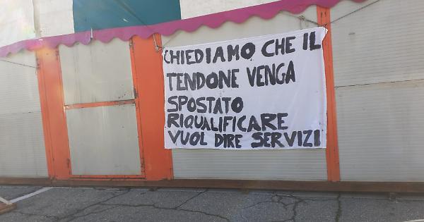 Non si placa la protesta contro il tendone montato in via Monviso, a Settimo Torinese. Nelle ultime ore, sopra la struttura, è comparso uno striscione che dice: "Chiediamo che il tendone venga spostato. Riqualificare vuol dire servizi"
