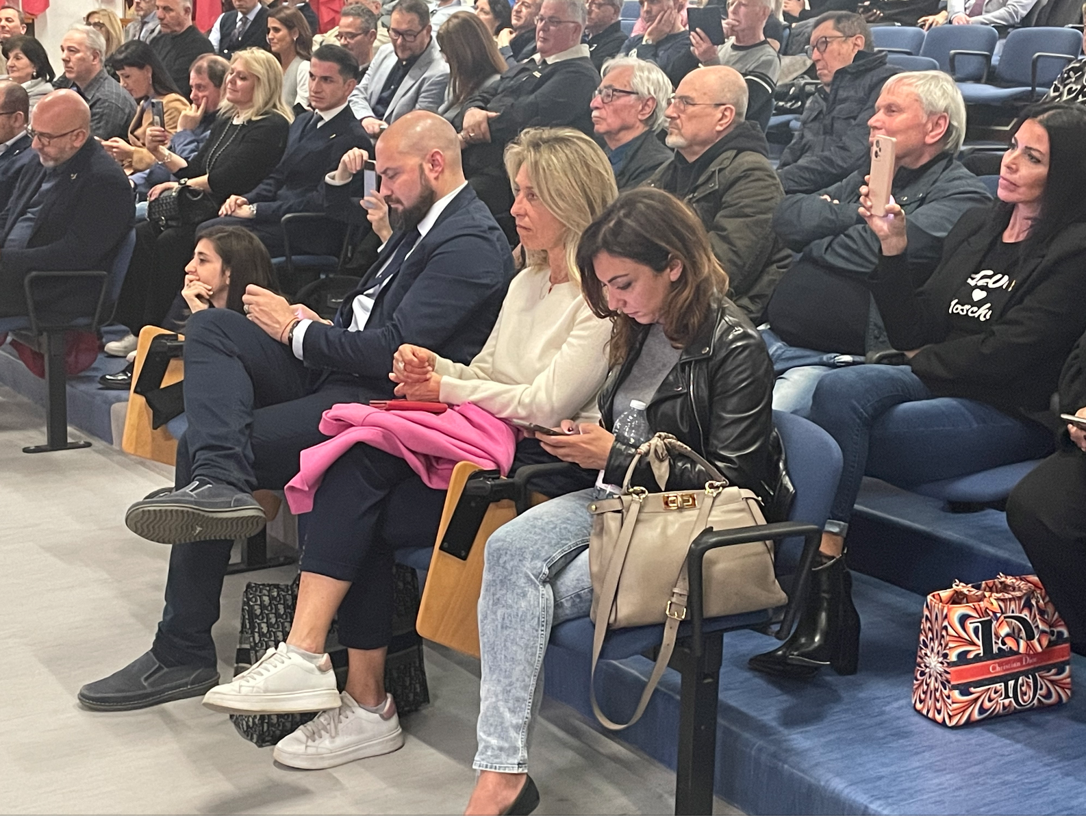 Da destra in primo piano: la parlamentare di Fratelli d'Italia, Augusta Montaruli, Paola Antonetto, consigliera comunale a San Mauro Torinese e candidata in Regione con Fratelli d'Italia, Maurizio Marrone, assessore regionale di Fratelli d'Italia