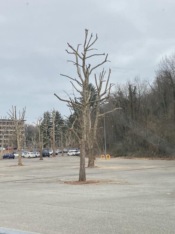 Poco più in basso, un’altra foto di Giulia Proto, questa volta degli alberi “spennacchiati” delle aree di sosta dell’Olivetti.
