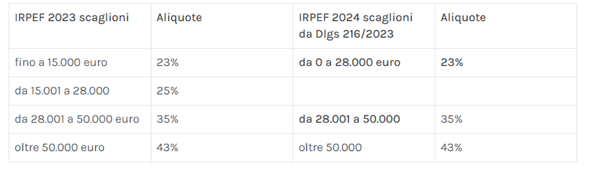 Confrontiamo l'Irpef 2024 con le aliquote e scaglioni 2023 previsti dalla Legge di Bilancio 2022 (articolo 1, commi 2-7 della legge n. 234 del 2021):