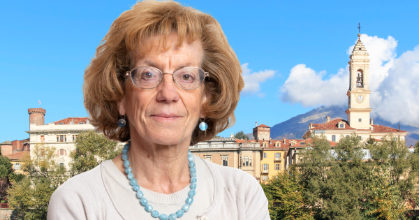 Enrica Barbara Manucci, sullo sfondo Ivrea