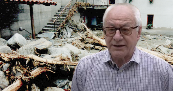 Fausto Francisca e di sfondo, la casa di Silvia Zilli travolta durante l'alluvione del 1994