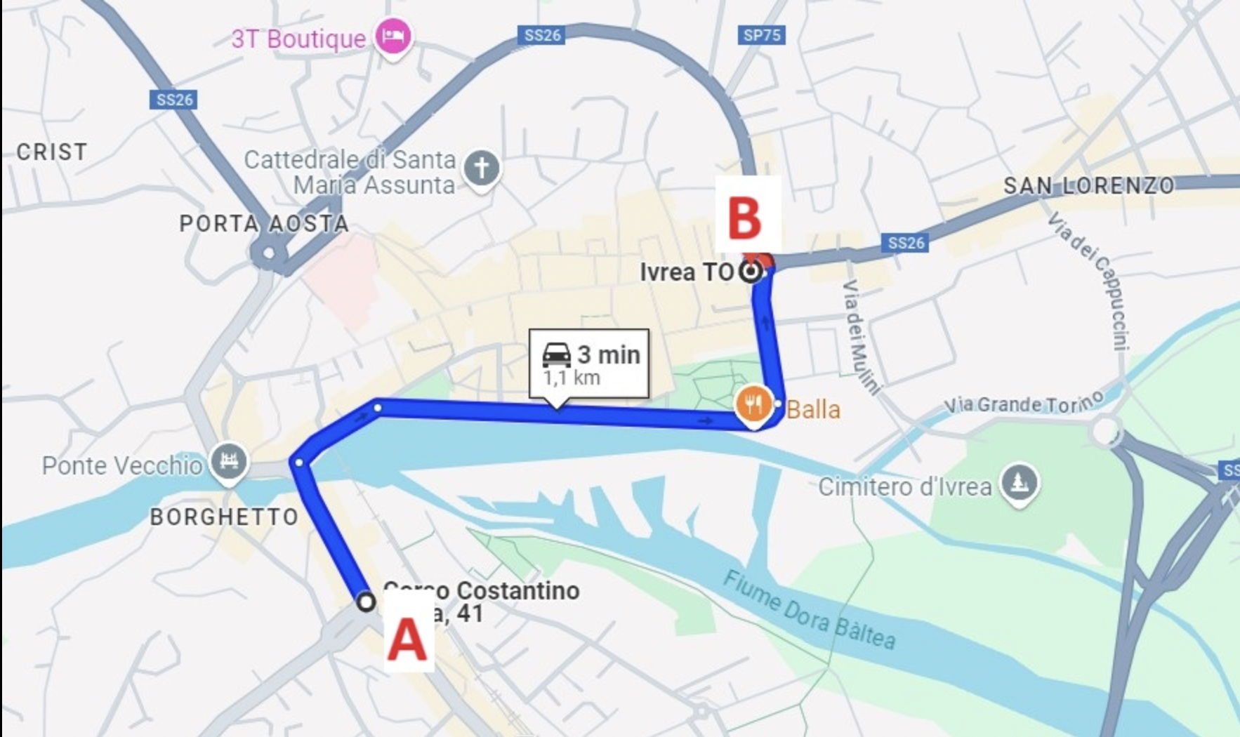 Lo ha fatto in maniera egregia, con tono ironico e pubblicando una mappa di Ivrea con le strade interessate dall’ordinanza comunale, evidenziate in blu da “A a B” .