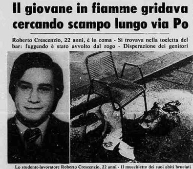 Roberto Crescenzio non è un fascista, non è neanche un militante politico, come non lo è il suo amico Diego Menardi. E' solo un ragazzo della zona che frequenta quel posto. Muore il 3 ottobre.
