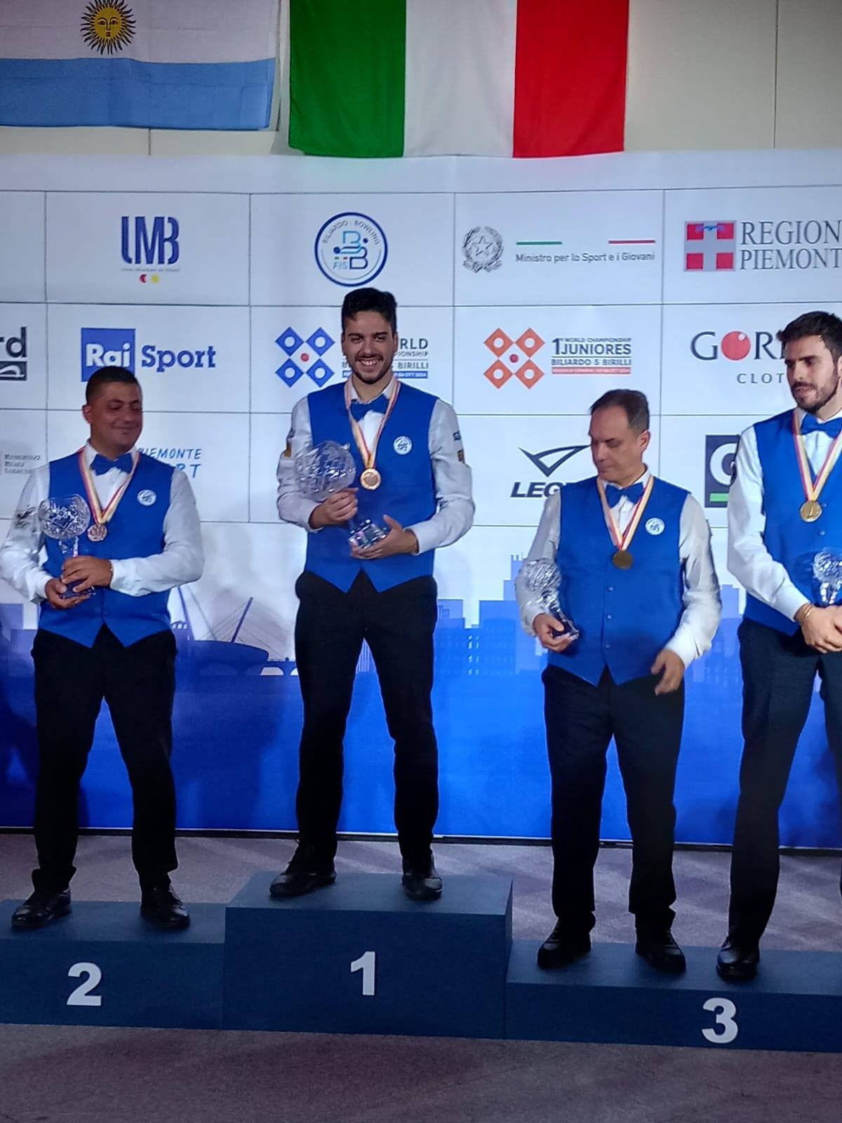 A completare il podio mondiale ci sono anche gli italiani Camilo Gomez e Ciro Davide Rizzo, quest'ultimo al suo terzo piazzamento consecutivo tra i migliori al mondo. L'evento è stato curato dalla Federazione Italiana Sport Biliardo e Bowling (FISBB), grazie anche al contributo del Ministro per lo Sport e i Giovani, Andrea Abodi, attraverso il Dipartimento per lo Sport, e con il patrocinio della Regione Piemonte.