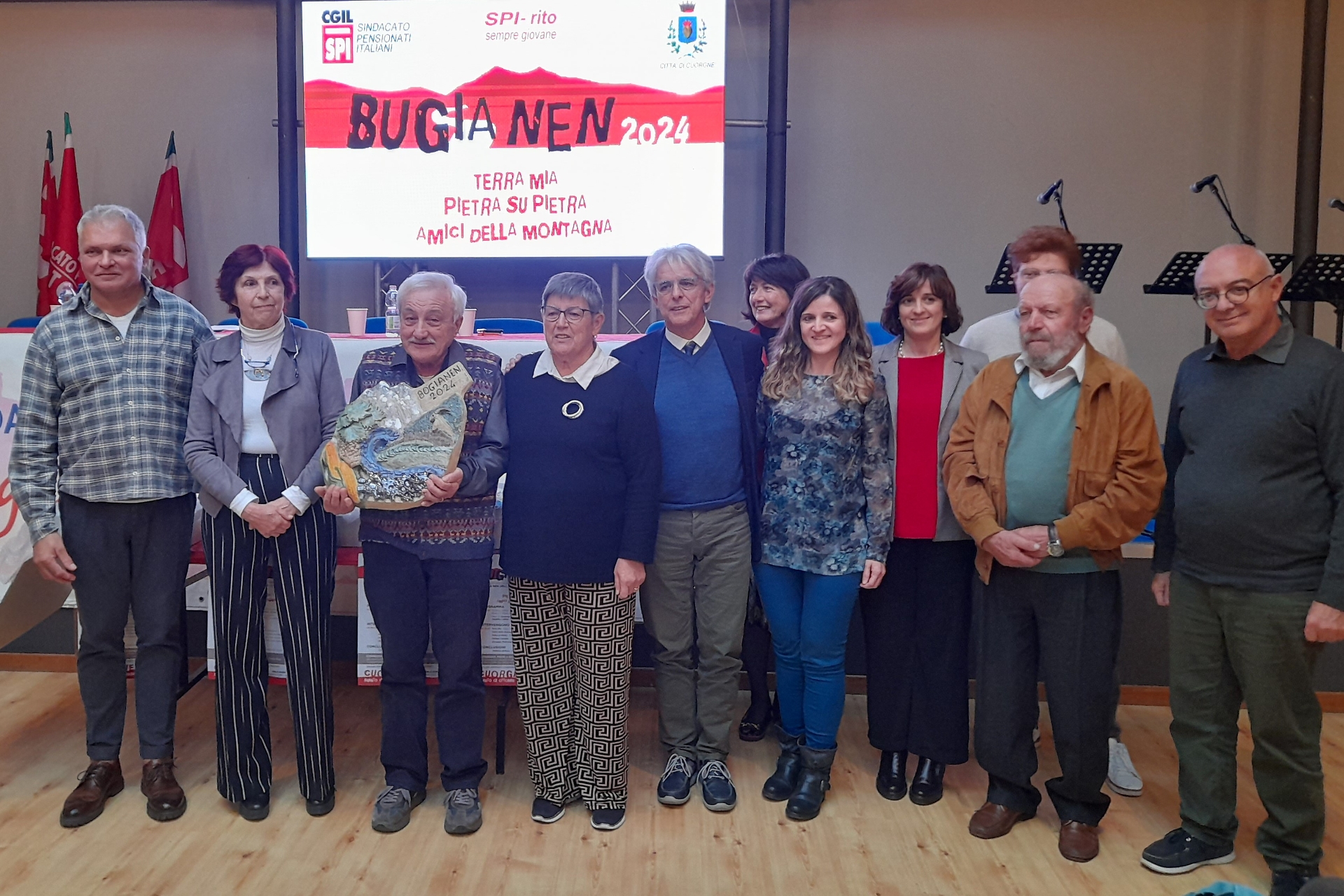 E’ stata una manifestazione alquanto interessante quella tenutasi nel pomeriggio di sabato 12 ottobre a Cuorgnè per la consegna del Premio “Bugia Nen dell’Anno” assegnato dallo SPI CGIL- Lega 33 dell’Alto Canavese. Il riconoscimento – un’opera in ceramica realizzata dall’artista Maria Teresa Rosa - è stato conferito a tre associazioni culturali operanti sul territorio: TERRA MIA che ha sede a Castellamonte, PIETRA su PIETRA a Frassinetto, AMICI della MONTAGNA a Castelnuovo Nigra. La scelta del Sindacato Pensionati CGIL è stata fatta con un preciso obiettivo: valorizzare il lavoro – spesso silenzioso e dietro le quinte – che queste associazioni svolgono in favore dei piccoli centri montani, ai quali lo SPI sta rivolgendo da qualche tempo una particolare attenzione.