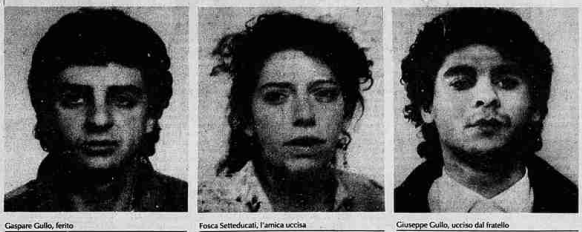 Lei si chiamava Fosca Setteducati ed era una studentessa di 24 anni fidanzata col suo aggressore, il ventinovenne Giuseppe Gullo. Il terzo, l’unico sopravvissuto, è il fratello di Giuseppe, Gaspare, 31 anni.