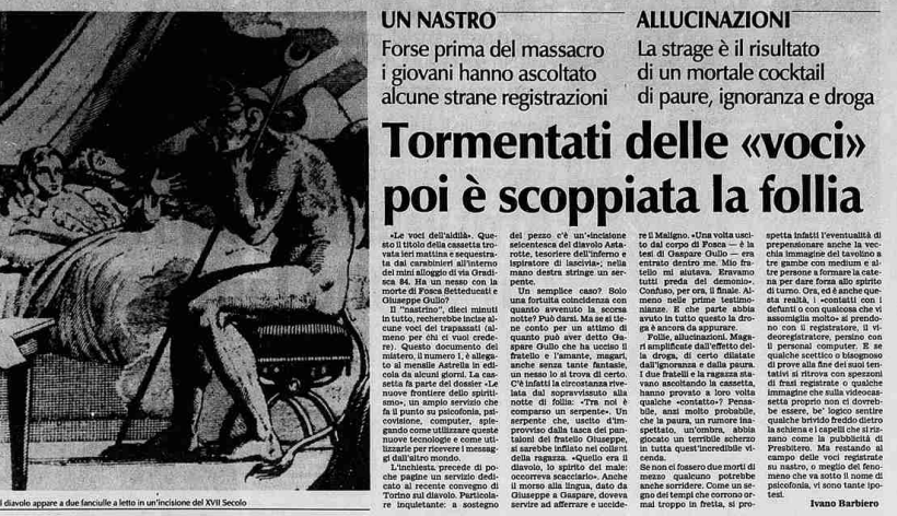 La vicenda, su cui i giornali si buttano senza ritegno, viene presentata come una specie di orgia satanica nella quale Gaspare avrebbe avuto, sostanzialmente, il ruolo di esorcista.