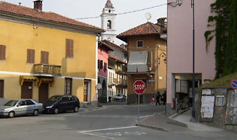 Una veduta del centro di Foglizzo, con il campanile sullo sfondo