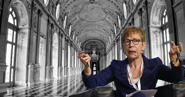 Milena Gabanelli: sullo sfondo la reggia di Venaria Reale