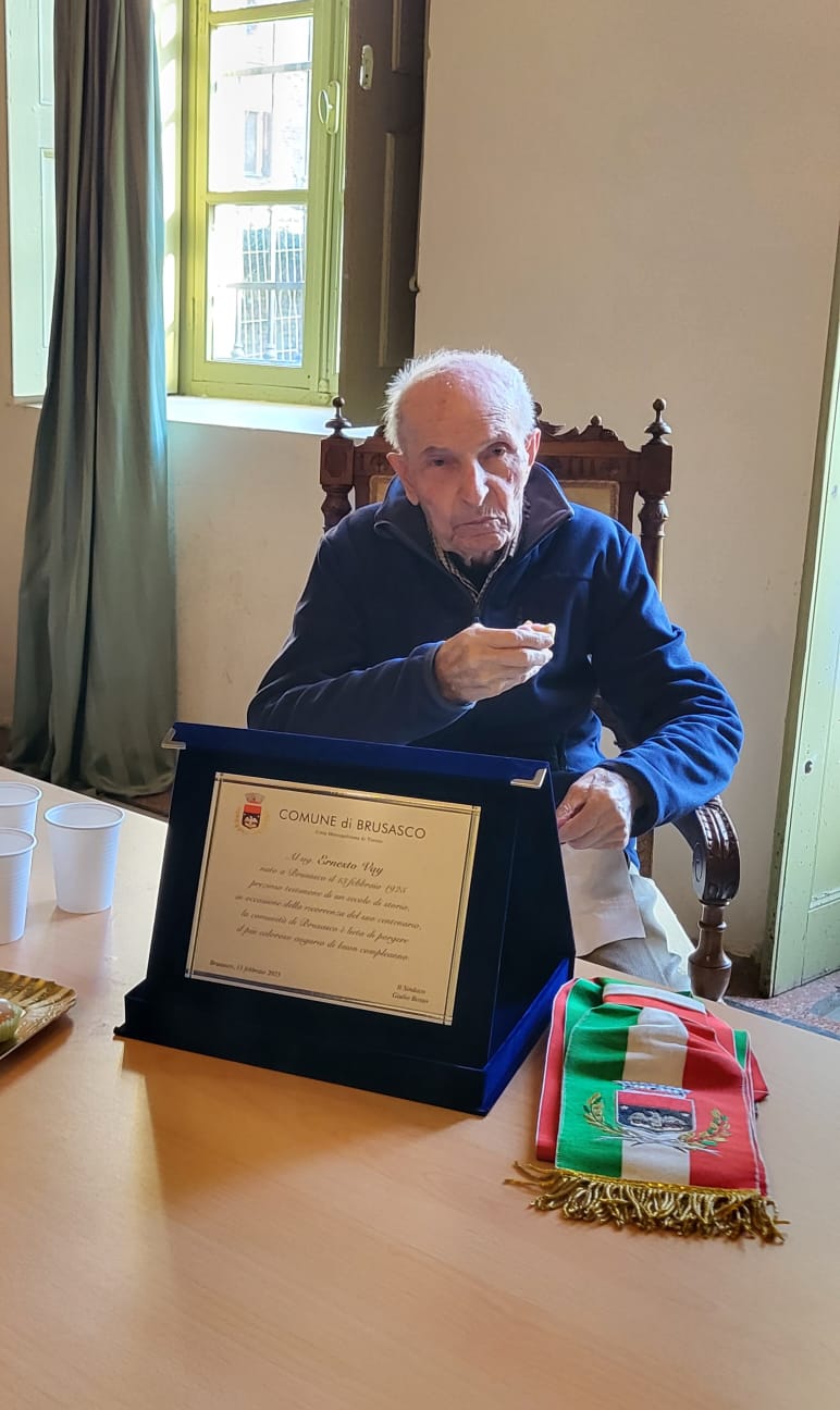 Quando si pensa agli esordi della sua vita, un secolo fa, Brusasco era un borgo di campagna, l’Italia era ben lontana dallo scenario attuale e la gente scriveva le lettere a mano o, nel migliore dei casi, con la macchina da scrivere. Ernesto, vivendo il passaggio dalle lampade a petrolio all’era digitale, è diventato un ponte vivente tra un mondo quasi scomparso e l’Italia moderna.