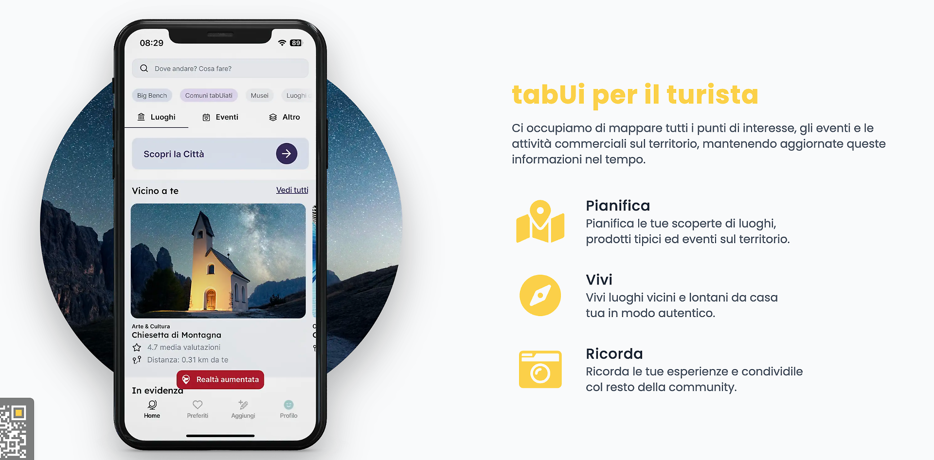 Nello specifico, l'app TabUi permetterà di mappare e geolocalizzare tutte le attività commerciali presenti sul territorio, fornendo informazioni dettagliate sulle aziende del territorio. Inoltre, grazie alla realtà aumentata, gli utenti potranno scoprire i punti di interesse anche a distanza, così come contribuire ad ampliare il database condividendo informazioni sui luoghi visitati.